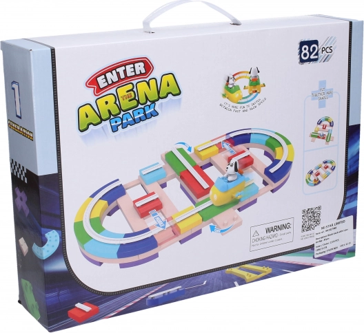 Amusant circuit automobile pour enfants offrant une piste de 118 cm, 82 pièces de construction et des éléments mobiles pour des heures de jeu créatif. Inclus: chariot avec 2 modes de vitesse, figurine de petit chien et ventouses pour une meilleure stabilité. Grâce au réagencement manuel des pièces, il est possible de modifier en cours de route la direction et la configuration de la piste.