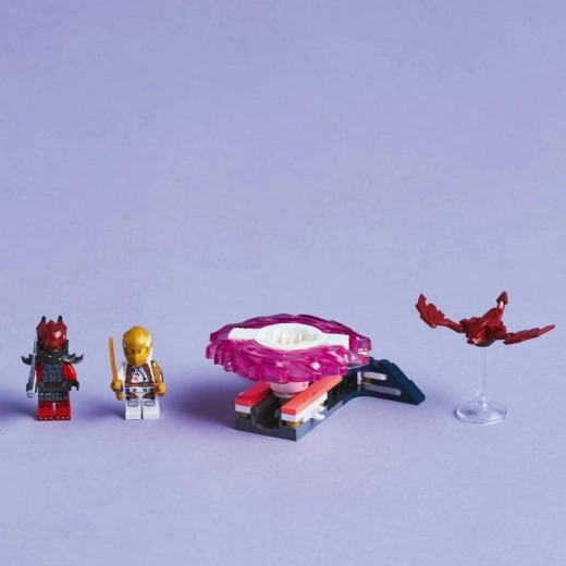 Entrez dans l’univers NINJAGO et rejouez des scènes palpitantes de la saison 3 de la série L’Ascension des dragons. La toupie avec lanceur offre une action rapide et simple – appuyez, faites tourner, visez la cible et regardez les deux éléments de puissance s’envoler. Grâce à l’application LEGO Builder, la construction est intuitive et amusante pour les enfants comme pour les parents.