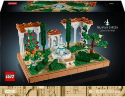 Accordez-vous un moment pour vous et plongez dans l’ambiance paisible d’un jardin avec une fontaine à plusieurs niveaux en point d’orgue, des pergolas blanches à colonnes coiffées d’un toit rouge et une végétation luxuriante. Cyprès, grimpantes fleuries, pétunias, hibiscus et de petits détails animaliers — un oiseau, une grenouille et un papillon de nuit — donnent vie au modèle.