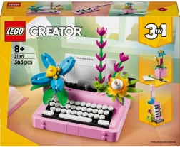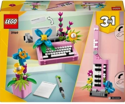 Le set Creator 3-en-1 – Machine à écrire avec fleurs permet aux enfants dès 8 ans de construire et de reconstruire trois modèles différents avec les mêmes briques.
