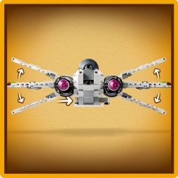 3 cockpits ouvrants, 6 ailes (4 basculantes via levier), 2 lance-projectiles à ressort, emplacement pour droïde