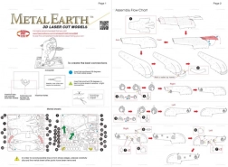 Le coffret contient deux plaques d'acier avec les pièces et un manuel d'assemblage. Les outils ne sont pas inclus, il est donc recommandé d'avoir de petites pinces coupantes et de fines pinces à portée de main. Les pièces sont assemblées avec des serrures qui maintiennent fermement le tout et vous permettent de construire un modèle très réaliste.