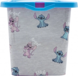 La boîte de rangement est ornée de motifs joyeux des personnages Stitch et Angel, ce qui en fait un accessoire amusant pour chaque pièce.