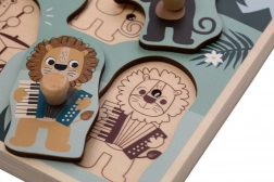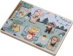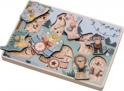 Explorez le monde de la jungle avec un puzzle d’encastrement en bois sûr, qui joue les sons de chaque animal lorsque la bonne pièce est insérée. Les enfants s’entraînent de façon ludique à reconnaître les formes et apprennent à associer l’image au son.