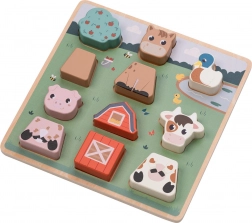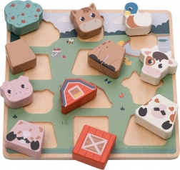 Ce puzzle d’encastrement en bois sur un plateau solide ravira tous les petits amoureux des animaux. En jouant, les enfants apprennent à reconnaître les formes et les couleurs, entraînent leur patience et leur logique tout en développant leur motricité fine et leur coordination œil–main. Les pièces représentant des animaux s’insèrent facilement dans le plateau et peuvent également être utilisées séparément pour le jeu libre.
