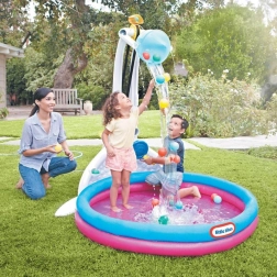 Apportez à la maison le fun d’un parc aquatique ! La zone de jeu aquatique Little Tikes propose une double cascade, une piscine gonflable, un convoyeur interactif pour l’eau et les balles et jusqu’à 25 balles en plastique pour un divertissement sans fin. Il suffit de raccorder un tuyau d’arrosage pour lancer l’action arrosée – ou de jouer à l’intérieur sans eau.