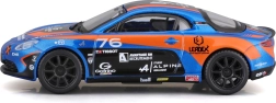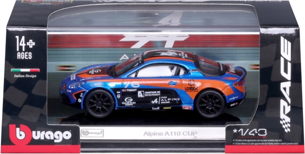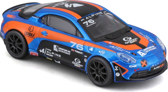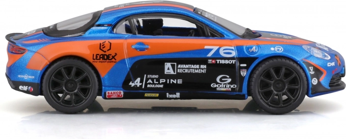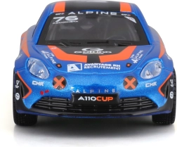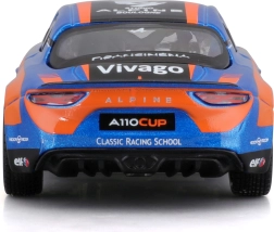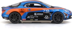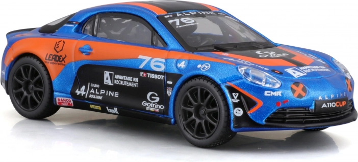 Ce modèle détaillé de la voiture de course Alpine A110 Cup, avec son emblématique livrée bleu‑orange, offre des proportions réalistes, des marquages nets des sponsors et des roues libres pour un déplacement fluide. Les vitres teintées, les phares profilés et la silhouette aérodynamique soulignent le caractère sportif de l’original.