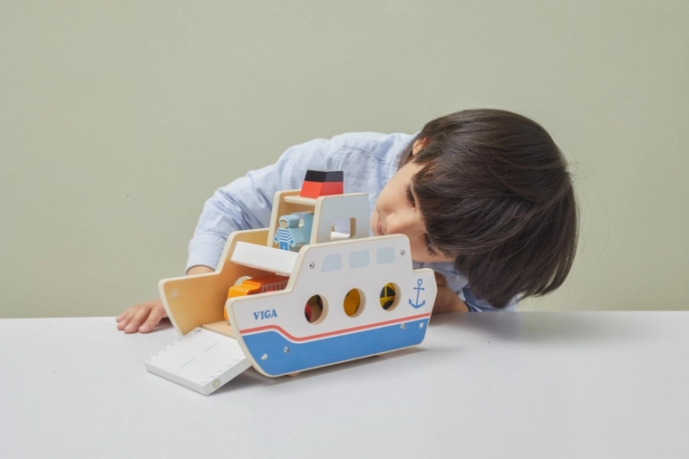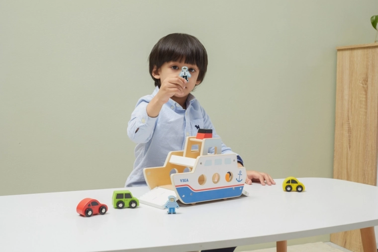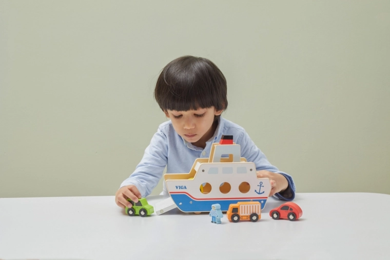 Découvrez un bateau en bois ludique sur roulettes servant de ferry pour petites voitures. Grâce aux rampes rabattables des deux côtés, les enfants profitent d’un jeu réaliste tout en développant leur motricité fine. Sont inclus 4 petites voitures en bois à roue libre et 2 figurines, qui stimulent le jeu créatif et imaginaire.