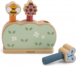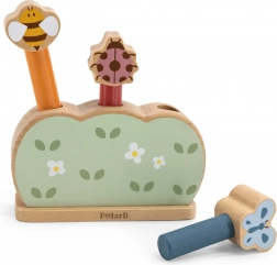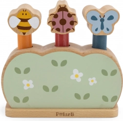 Le jardin sauté en bois POLARB est une façon ludique de familiariser les enfants avec les couleurs, les animaux et la logique action–réaction. L’enfant appuie sur la tête de la figurine, qui jaillit gaiement de son socle – un principe simple qui assure fous rires et entraînement de la concentration.