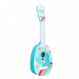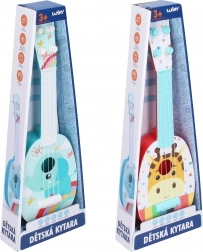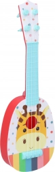 Cette guitare d'enfant avec un motif d'animaux africains est idéale pour les petits débutants. Elle possède quatre cordes en plastique et une longueur de 37 cm, ce qui la rend parfaite pour une prise facile et un jeu agréable.