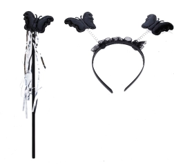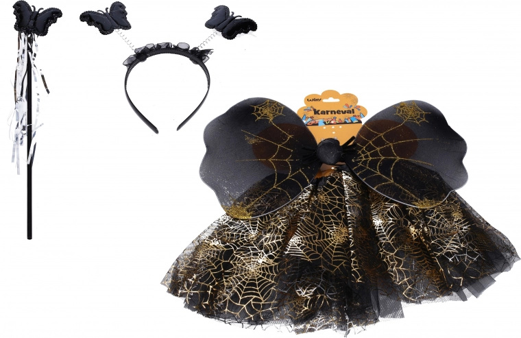 Transformez-vous en un élégant papillon noir en un instant. Ce set de carnaval complet offre des accessoires assortis qui créent un costume impressionnant pour les enfants. Des ailes légères, une jupe confortable et des accessoires assortis faciles à enfiler et qui tiennent bien.