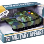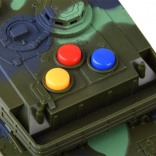 Le char est fabriqué en plastique de qualité, garantissant un aspect réaliste et une grande durabilité. Il est équipé de trois boutons colorés qui simulent des sons réalistes tels que la conduite, la préparation et le tir du projectile, ainsi que la sirène. À chaque pression sur un bouton, vous ressentirez l’atmosphère authentique d’une action de combat.