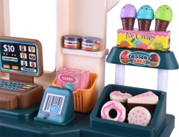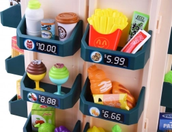 Le set offre des éléments réalistes pour un jeu de rôle avancé. Les enfants peuvent utiliser un scanner de codes-barres portable et faire la queue comme dans un vrai supermarché.
