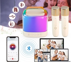 Profitez de l'amusement partout grâce au mini haut-parleur sans fil portable avec deux microphones. Cet ensemble exceptionnel permet de chanter en duo ou en solo grâce à ses deux microphones. Avec ses dimensions compactes, il se transporte facilement au terrain de jeu, en excursion ou chez des amis pour organiser une super discothèque. La connexion par bluetooth vous permet de chanter du karaoké directement depuis votre téléphone.