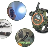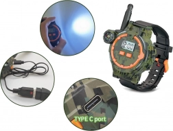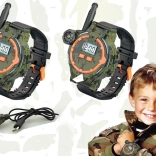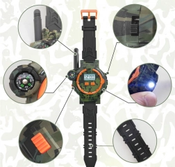 Ces montres multifonctionnelles de style militaire permettent aux enfants de communiquer à une distance allant jusqu'à 200 mètres grâce au talkie-walkie intégré. Accessoire parfait pour les jeux extérieurs avec des amis, les montres séduisent par leur conception plastique-gomme de qualité en camouflage avec bracelet noir.
