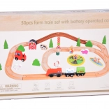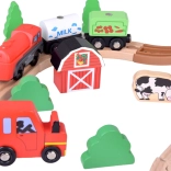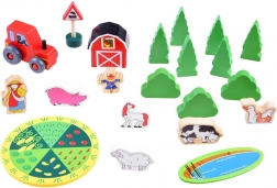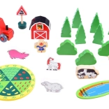 L'ensemble comprend des éléments authentiques de la ferme comme une grange, un tracteur et diverses figurines d'animaux, permettant aux enfants de créer leur propre univers fermier.