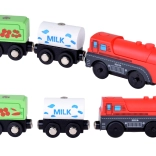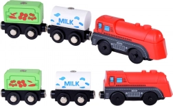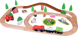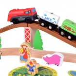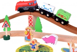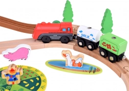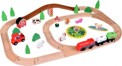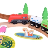 Ce train en bois est parfait pour développer l'imagination des enfants et leurs compétences motrices. La haute qualité de fabrication avec des couleurs et motifs attrayants assure une sécurité et un divertissement durable. La locomotive à piles (alimentée par une pile AAA 1,5 V, non incluse) se déplace en douceur sur la voie et fascine avec son effet lumineux.