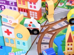 - Blocs de la ville: Différents blocs en bois qui peuvent être combinés et construits dans différentes configurations.