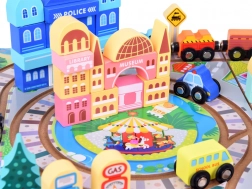 Découvrez le monde fascinant des constructions en bois avec cet ensemble en bois pour construire une ville, qui offre 89 éléments de plaisir. Le set inclut des rails, trains à piles et divers blocs colorés pour construire des bâtiments uniques.