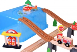 Un réseau de voies entoure la ville, permettant aux enfants de planifier des itinéraires et de créer leurs propres histoires. Le train mobile peut transporter des passagers et des marchandises pour des scénarios de jeu réalistes.