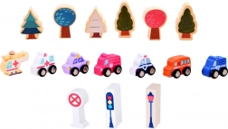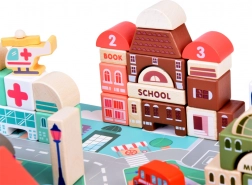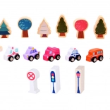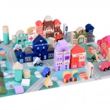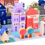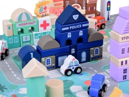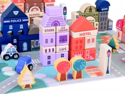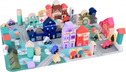 Ce set pastel comprend 115 pièces en bois variées incluant des bâtiments, des véhicules, des arbres et des panneaux de signalisation. Les enfants peuvent construire leur propre ville avec une école, un hôpital, une banque et un commissariat. Avec ce jeu de construction, ils développent non seulement leur imagination, mais aussi leurs compétences motrices.