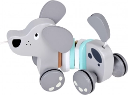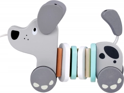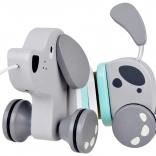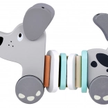 Le chien en bois a des oreilles et une queue mobiles, ce qui apporte du dynamisme au jeu.