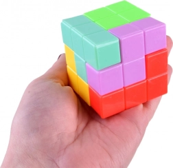 Le Cube magique Tetris est un divertissement parfait pour un joueur. Il se compose de 7 pièces qui, une fois correctement assemblées, forment un tout — un cube de 5 cm x 5 cm x 5 cm.