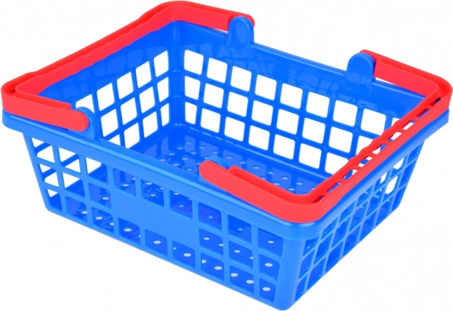 Le panier en plastique bleu et rouge complète parfaitement le set de jeu et offre un rangement facile pour tous les éléments.