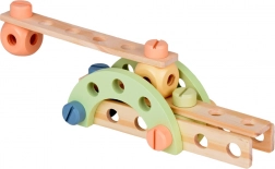 Grâce aux vis et écrous colorés, les enfants apprennent à reconnaître les couleurs et à assembler des pièces, ce qui développe la pensée logique.