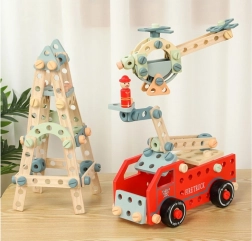 Plongez dans le monde de la créativité avec notre ensemble de construction en bois, qui soutient le développement des compétences clés chez les enfants. Cet ensemble éducatif permet de créer divers modèles, tels que des camions de pompiers, des avions, et d'autres formes créatives.