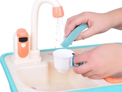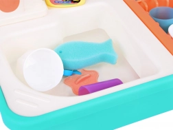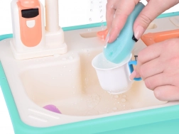 Fonctionnalités : Il suffit de remplir le réservoir avec 2,2 litres d’eau, de tourner le robinet et d’observer la circulation de l’eau. L’évier peut être bouché avec le bouchon fourni, ce qui apprend aux enfants à économiser l’eau et à protéger l’environnement. Le robinet est alimenté par 2 piles AA (non incluses).