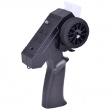 Radiocommande pistolet ergonomique avec direction fine, sélection de la vitesse, réglage du carrossage/parallélisme et commande des éclairages.