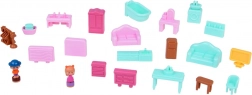 Canapé, baignoire, table, chaises, commodes ainsi que figurines et décorations – tout pour créer un mini-monde et des scènes selon l’imagination.