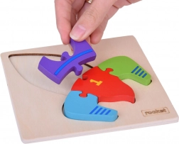 La plaque et les pièces sont en bois soigneusement poncé, la surface est traitée avec des peintures à base d'eau et ne présente pas d'arêtes vives. Grâce à ses dimensions compactes de 14,5 × 14,5 cm, ce puzzle convient à la maison comme en voyage et constitue une excellente idée cadeau.