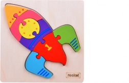 Les enfants entraînent leur préhension, leur précision et leur concentration en insérant les 7 pièces dans la silhouette de la fusée sur une plaque en bois robuste.