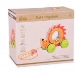 Grâce à la large voie des roues, le hérisson est stable et facile à manœuvrer. Le jouet est fabriqué en bois résistant et peint avec des peintures sûres et non toxiques, idéal même pour les plus petits explorateurs. La cordelette orange avec amanite en bois facilite la prise et la traction.