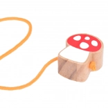 La cordelette ergonomique terminée par une amanite en bois facilite la prise en main et le contrôle du jouet par les petites mains.