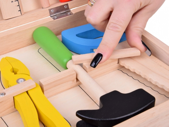 La valisette est solide, bien compartimentée et facilite le maintien de l’ordre. Les jouets en bois sont intemporels, écologiques et durables, ce qui en fait un excellent choix pour le jeu quotidien comme pour un cadeau.