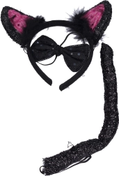 serre-tête avec oreilles de chat, nœud papillon, queue