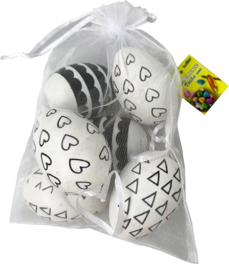 Les œufs décoratifs en plastique noir et blanc sont le choix parfait pour ceux qui recherchent un accessoire moderne et original pour leur maison. Les œufs sont fabriqués en plastique résistant et fournis par lot de 6 pièces dans un sac en organza élégant.