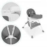 Chaise haute avec plateau et panier, harnais 5 points, ECOTOYS – Gris