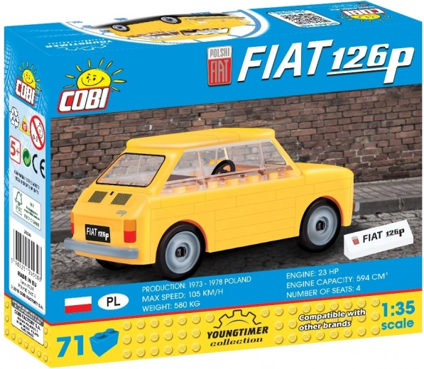 Coffret de construction COBI Fiat 126p propose l'assemblage de la légendaire « Maluch » avec 71 pièces de haute qualité. C'est un excellent complément pour les collectionneurs et les amateurs de construction, combinant amusement et classique du monde automobile.