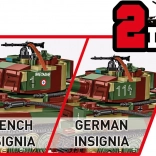Le set est entièrement compatible avec d’autres jeux de construction, utilise exclusivement des impressions sans autocollants et est fabriqué dans l’UE. Choisissez le marquage 2-en-1 – allemand ou français « Bretagne » – et exposez le modèle avec sa plaque d’information. Deux figurines détaillées (tankiste allemand et tankiste français) complètent l’expérience authentique.