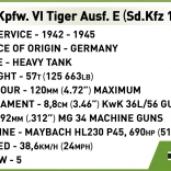 Ce modèle minutieusement réalisé s’inspire du célèbre char Pz.Kpfw. VI Tiger Ausf. E portant le numéro tactique 114, connu du Musée des Blindés de Saumur. Grâce à sa richesse de détails, son camouflage fidèle et ses éléments fonctionnels, vous apprécierez autant la construction que le jeu. Il comprend un moteur en briques amovible Maybach HL 210, une tourelle rotative et un canon à élévation, des trappes ouvrantes et une traction réaliste des chenilles.