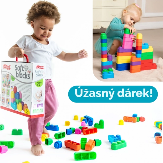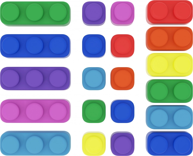 Le coffret contient une combinaison de blocs simples, doubles et triples, permettant de construire des formes simples comme plus complexes. Le matériau est souple et sûr, adapté aux plus jeunes enfants, pour la maison comme pour la maternelle.