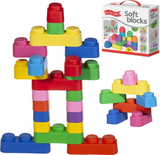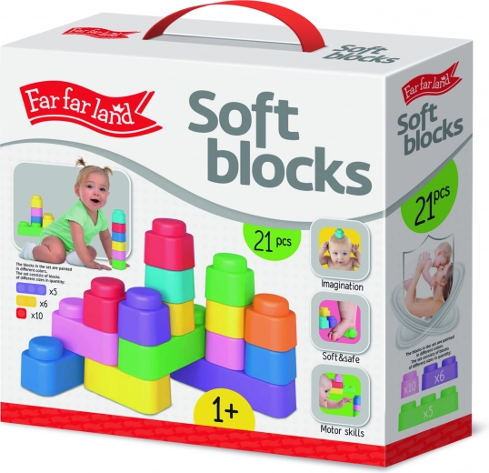 Découvrez un jeu créatif avec le jeu de construction souple Far Far Land. Le set comprend 21 blocs colorés en matériau sûr et agréable, idéal pour les enfants. Il favorise la motricité fine, la créativité et un jeu sécurisé sans arêtes vives.