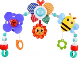 Cette arche de jeu colorée est conçue pour être facilement fixée à la poussette, au lit bébé et au siège auto. Grâce à son angle réglable, vous l’adaptez aisément aux besoins et à la position de votre enfant. Les éléments suspendus avec hochets et textures invitent à l’exploration, à la préhension et à l’étirement des petites mains.