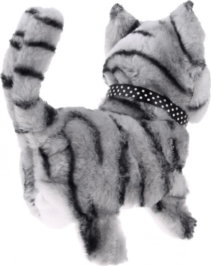 La chatte interactive au pelage gris tigré a une fourrure peluche toute douce, des yeux bleus et un adorable petit nez rose. Un collier à pois ajoute une touche réaliste. Le jouet est parfait pour développer l’imagination et la motricité fine, tout en offrant aux enfants beaucoup de fun à la maison comme en déplacement.