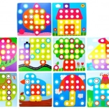 Les enfants composent des images colorées avec les picots, entraînent la préhension, la précision et la coordination œil–main, tout en développant leur imagination.