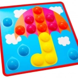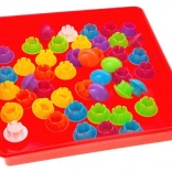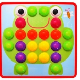 La mosaïque créative à picots est un excellent choix pour les enfants curieux. Le coffret comprend des picots colorés, une plaque en plastique et des modèles illustrés dans lesquels les enfants insèrent les picots selon les couleurs ou leur imagination. Le jeu favorise la pensée créative, la reconnaissance des couleurs et la motricité fine.